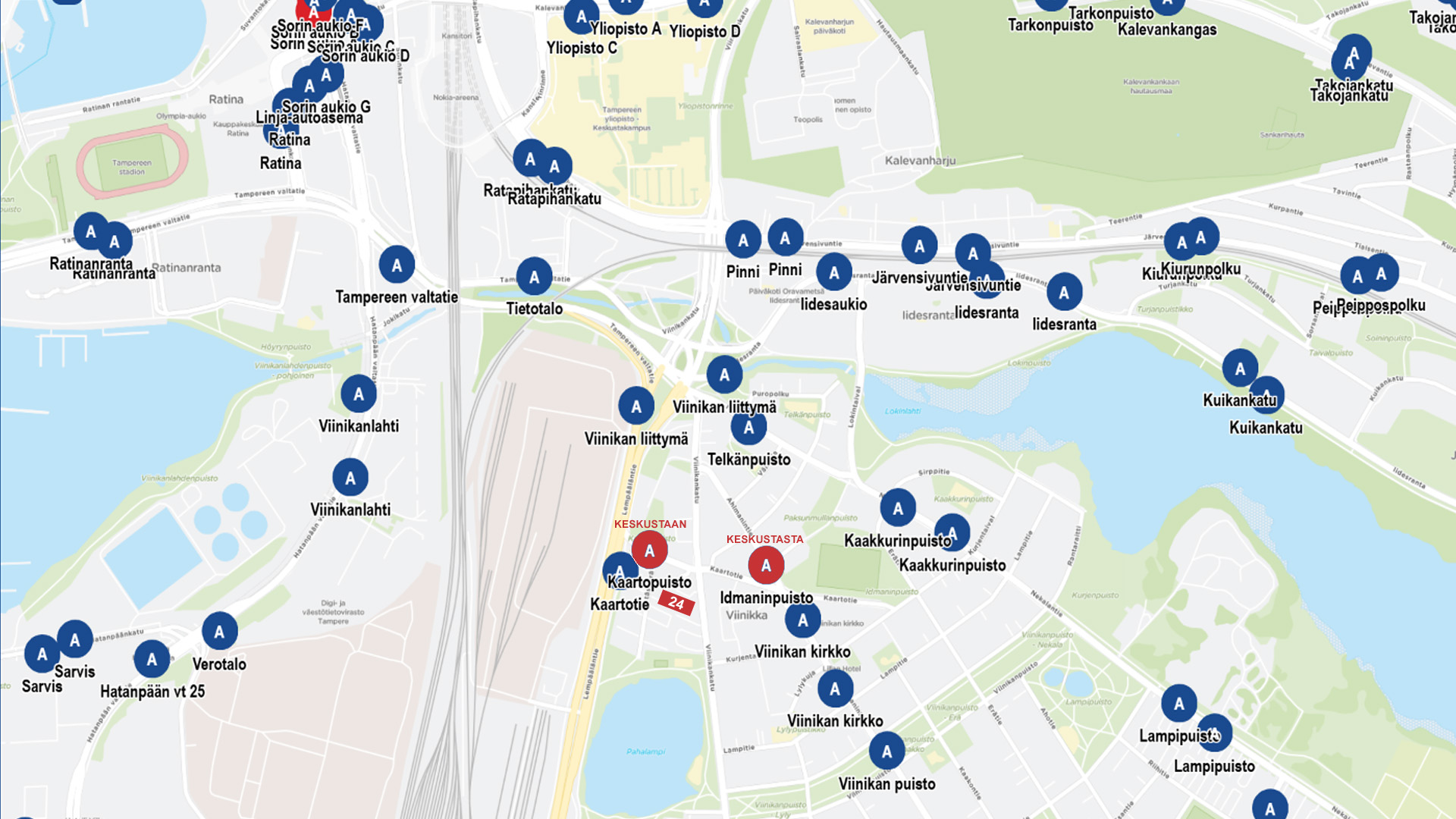 Keskustasta palatessa lähin pysäkki on n. 150 metrin päässä.
